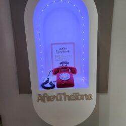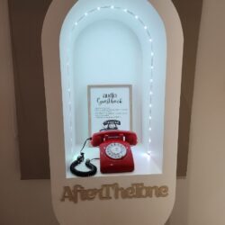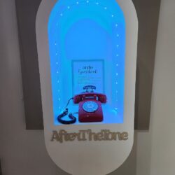 The stand for the audio guest book phone immediately catches the eye, as it is visible from afar throughout the entire event. You can also choose the LED lighting color that matches your theme. Lastly, it comes with a framed instruction sign for your guests.